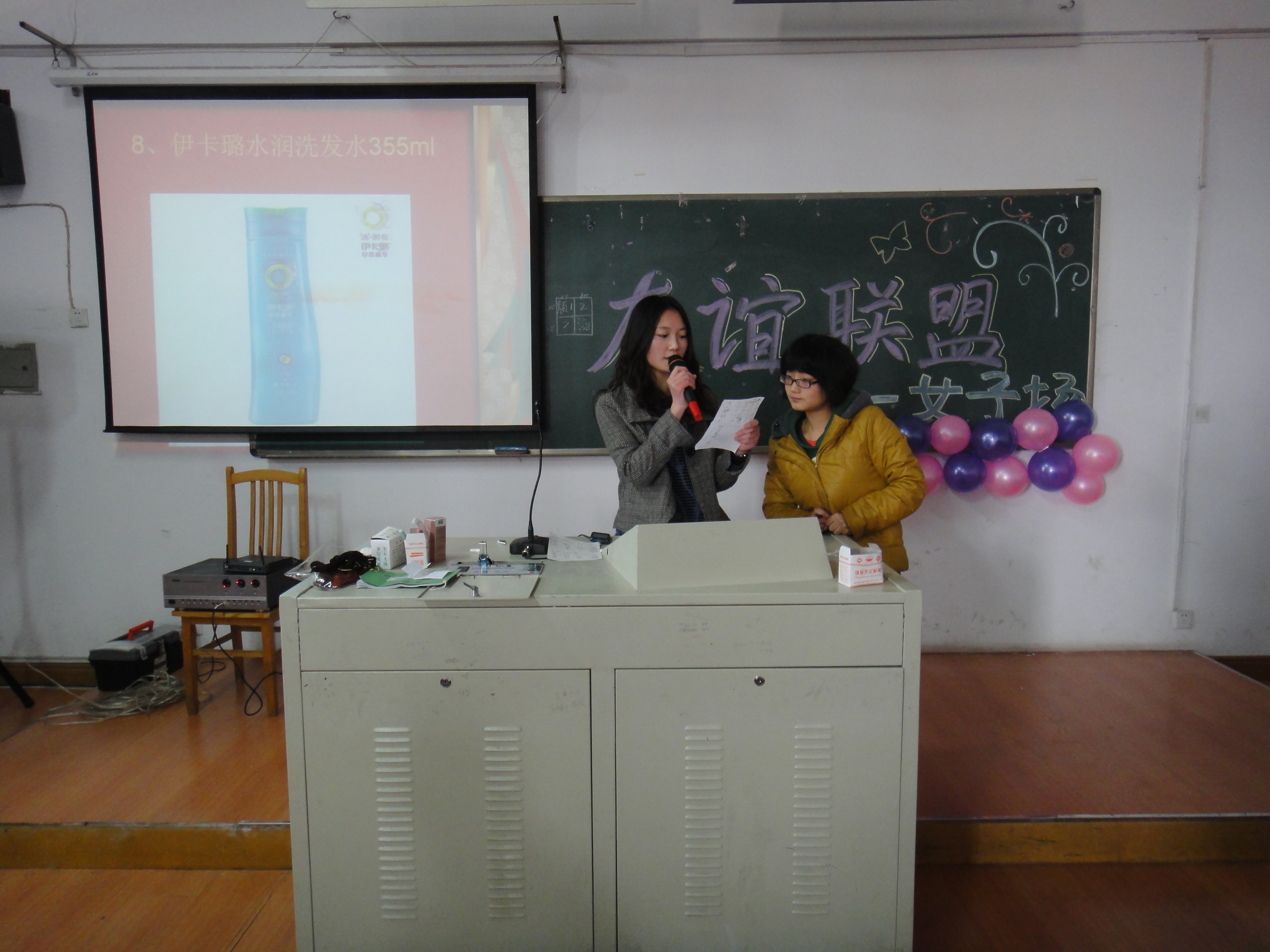 这次活动的举办方是文艺部,参加的成员是大一每个班级选派的八位女同学。一点半,在主持人的一声“开始”下,各个班级的四名同学便开始卖力地绣十字绣了。她们的那份淡定与自信,向大家展示了她们对这次比赛的喜爱与信心。就在她们飞针走线的同时,一旁的“商品竞猜活动”也悄悄的开始了。台上主持人通过幻灯片向大家展示商品,而台下每个班级的其他四名同学便开始讨论商品的价格,最终将答案写在白纸上。她们在热烈的讨论商品的价格,力求能够最接近正确答案。当一个班级的同学猜对价格的时候,台下总是爆发出一阵阵欢呼声。相信在这么活跃的气氛下,参加“十字绣”比赛的同学也能够更加从容比赛了。最后,十字绣比赛中第一位完成任务的同学还拿到了刘辅导员亲手制作的奖品。
