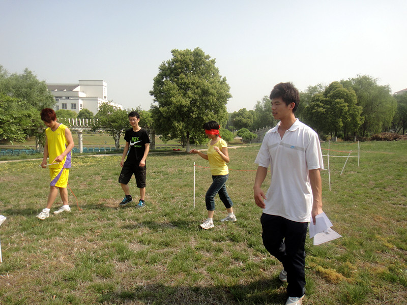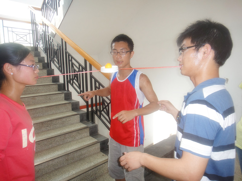 可以说大多数的同学对于此次活动都很陌生。在前期准备过程中,体育部的同学们积极收集材料,并请来专业同学进行现场指导。总指挥的一声哨响正式拉开了本次活动的帷幕,参加比赛的5支队伍,仿佛一只只离弦的箭,都铆足了劲,向各自的目的地奔去。活动中,选手们过五关,斩六将,身体力行,彰显智慧。在“密码破译”环节中,每队3名选手,齐心协力,共商大义,都以最快的速度将密码破译,获取了下一关的通行证。在“乾坤倒转”和“蒙眼过障碍”中,选手们更是将他们默契的配合表现得淋漓尽致。在最后的“乒乓球,呼拉圈”和“穿越火线”活动中,选手们更是集体力与脑力为一体,在越过重重障碍后顺利完成了比赛。