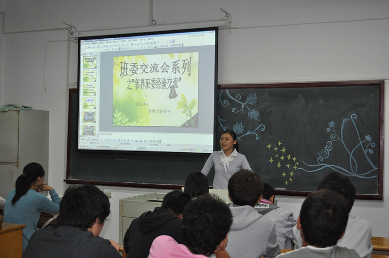 大会的第二项议程是大二优秀班委经验传授与交流。参加此项议程的有现郑慧,刘科,丁会会以及刘悦。首先由各位优秀班委向在场的大一各班班委阐释了作为班委的主要职能和任务,特别是班里两位灵魂人物——班长与团支书的主要工作内容,随后,大一新一届班委也积极踊跃的就自己所在职位的一些问题,与学长学姐进行了交流。大会在新生与老生的热切交流中画上了圆满的句号。