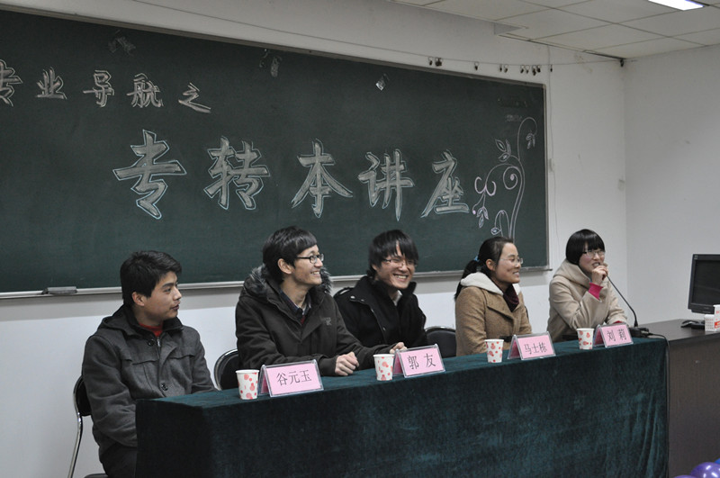 本次专转本讲座邀请了四位在去年专转本考试中取得了优异成绩的学长学姐为我们讲解有关专转本的相关内容。首先,学长学姐向大一学生讲解了专转本考试中文科与理科的区别,让新生们在了解考试背景的前提下走好第一步。其次,学长学姐结合其亲身经历,由点到面的向新生介绍了有关考前复习的相关内容。最后会议在同学积极地提问及热情的回答中画上了圆满的句号。