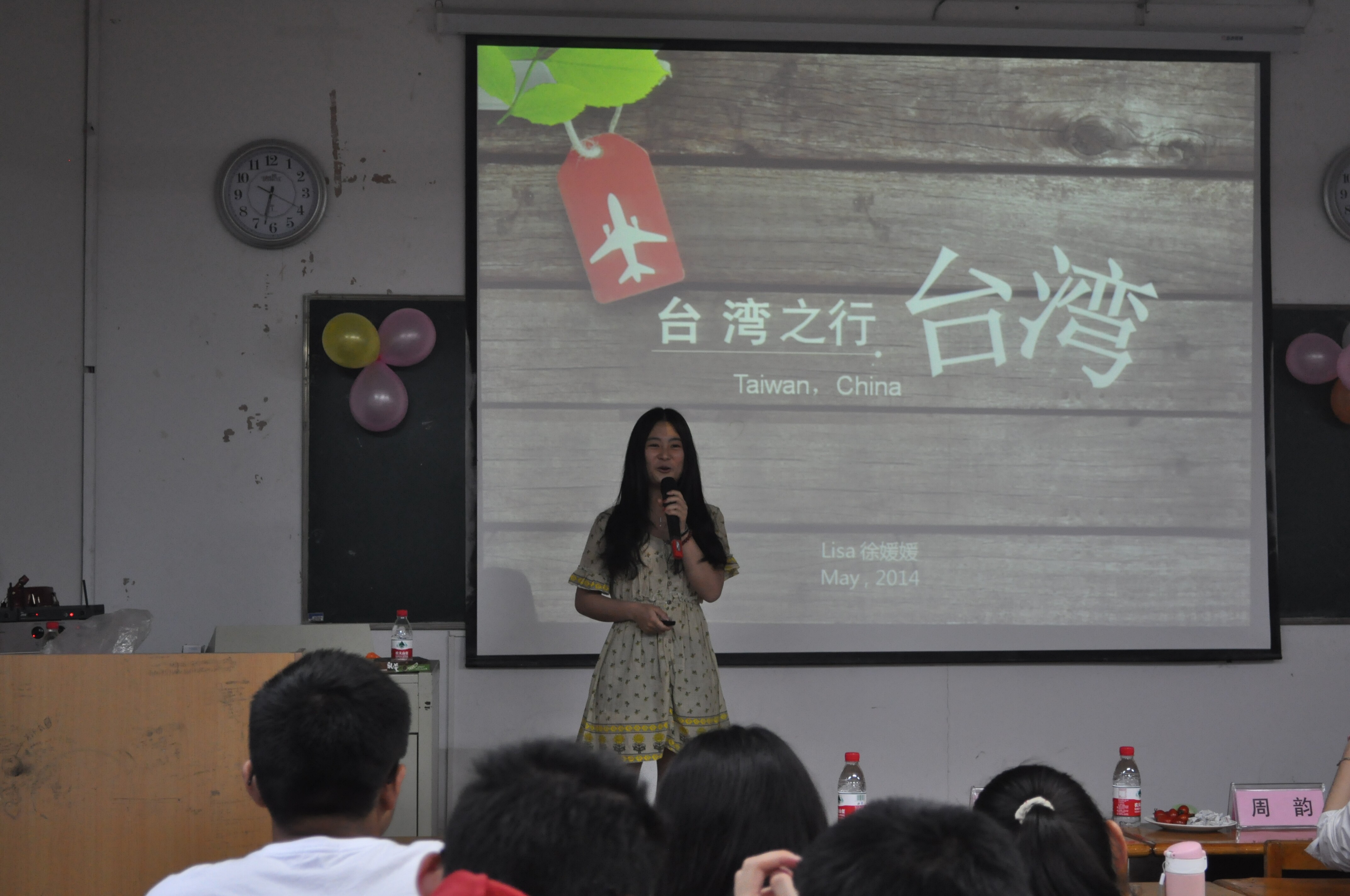 徐媛媛用俏皮的语言向我们介绍了台湾的秀丽风光,风土人情。那里有美丽的景色,阿里山、日月潭等,向我们展开了一幅美丽的风景画卷。那里还有各式各样的美食,炸蟋蟀、酥鱿鱼等都让我们垂涎三尺。除了精彩的课余生活,她还讲述了自己学习生活的点滴,尤其是全英文教学带来的挑战。总之,台湾同学们的友好以及台湾各种有趣的风俗习惯都让她难以忘怀,也让我们心驰神往。