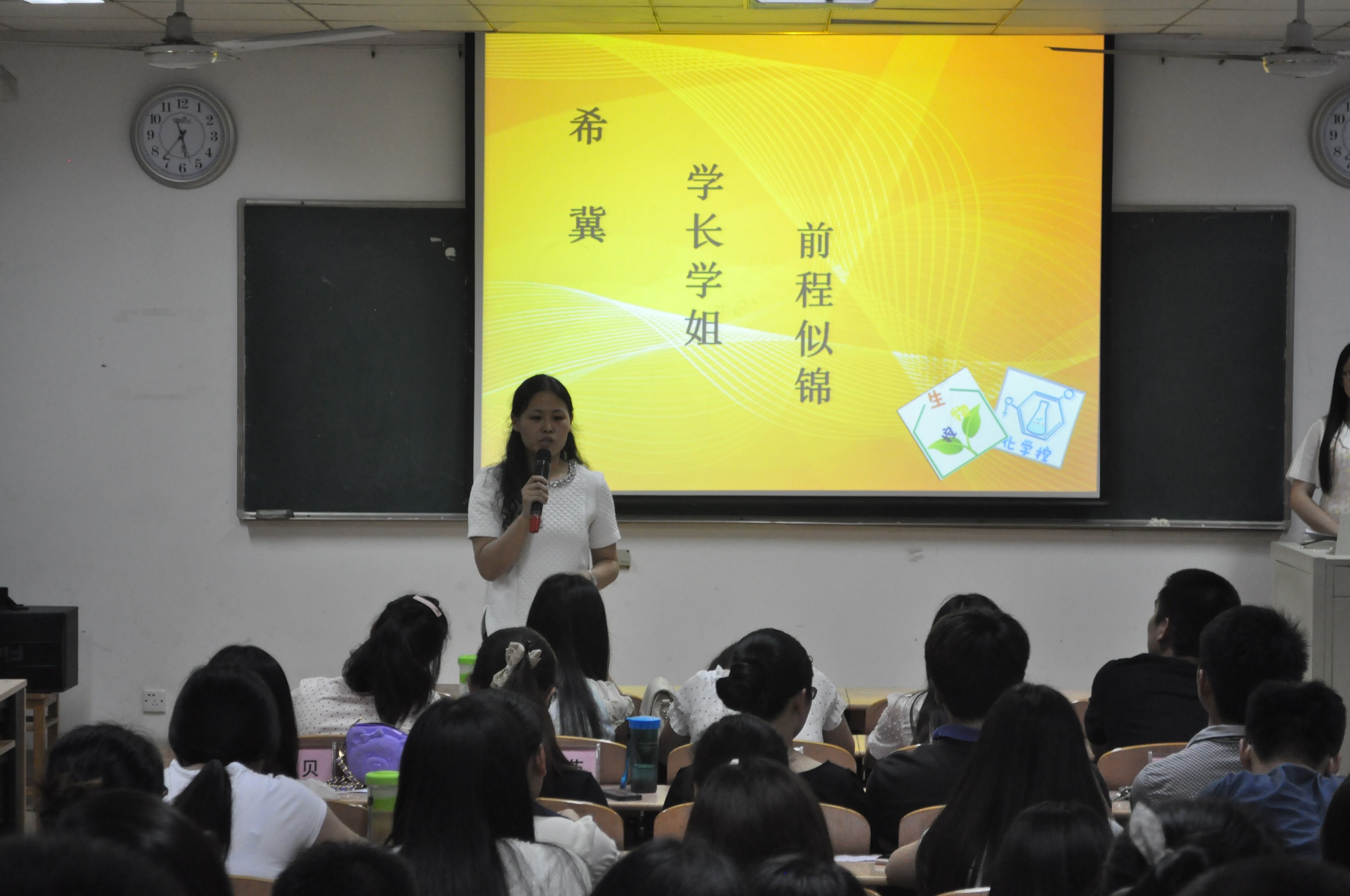 会议首先由学生会主席徐晨鹏同学述职并宣布新一届学生会主席。徐晨鹏学长在离别之际,将对三位辅导员老师的感谢及对学生会大家庭的留恋化为感人至深的别言,让现场的同学感触良多。接着,现任学生干部依次述职并宣布新一届学生干部成员名单,完成了新旧学生干部之间的交接,也叮嘱学弟学妹们一定要把生化院学生干部组织积极向上团结友爱的精神传承下去。最后,三位辅导员老师依次发表感言,并总结了现任分团委学生会工作,也表达了对各位同学美好的祝愿和衷心的感谢。换届仪式在同学们精心制作的回忆录中圆满结束。