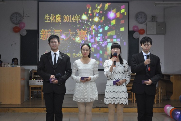 安静平和的初冬,夹杂了些许寒意,但情绪高昂的生化新星们,在这里释放了激情。2014年11月16日晚,我院在红楼201成功举办了2014级新星才艺大赛。朱琨老师特别出席了此次新星大赛,给予了参赛选手极大的鼓励。