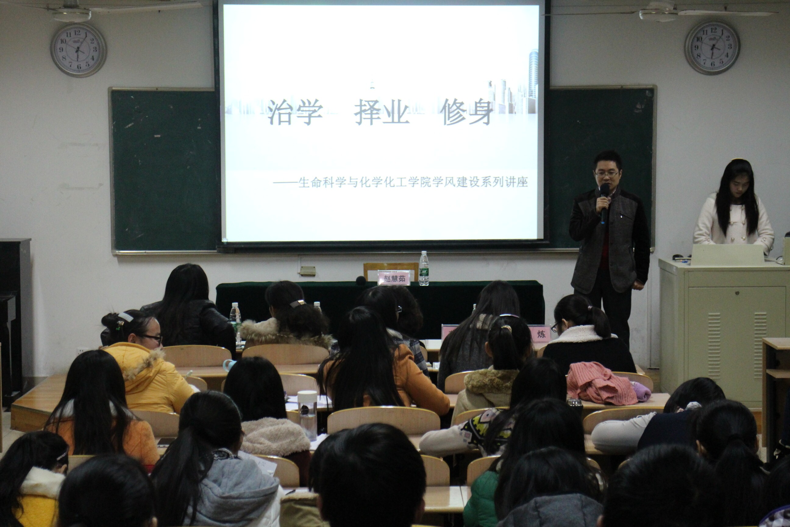 为推进学风建设,帮助高年级同学做好未来规划,我院近期推出“治学择业 修身”学风建设系列讲座,于12月3日晚进行了第一场讲座。此次讲座主要面向大三同学,邀请了南京大学物理化学方向硕士研究生赵慧茹作为主讲人。 赵慧茹根据自己本科和研究生阶段的学习经历,分享了自己在专业学习和研究生报考方面的经验,对于研究生阶段的专业方向和就业前景也给同学们做了详细介绍。最后,郭琦书记对赵慧茹同学给我们同学的无私帮助表示感谢,希望同学们有所激发,对自己的未来尽早规划。 讲座过后同学们纷纷表示赵慧茹的分享对自己即将面临的选择有很大的帮助,也更有利于在同学们坚定信心,进一步确定学习目标,形成良好的学习氛围。