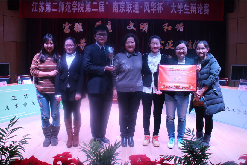 图为谢晨曦同学获得校辩论赛一等奖(右二)