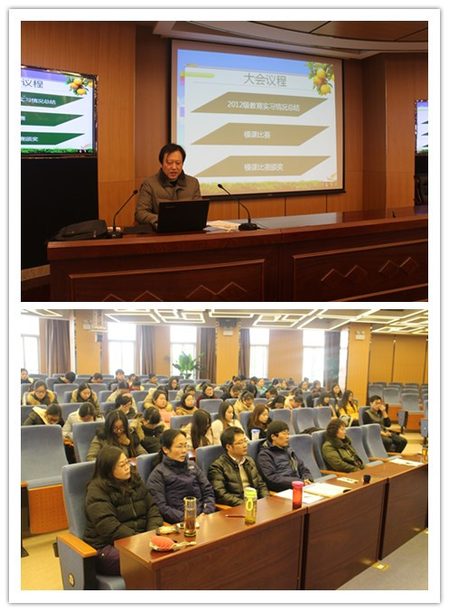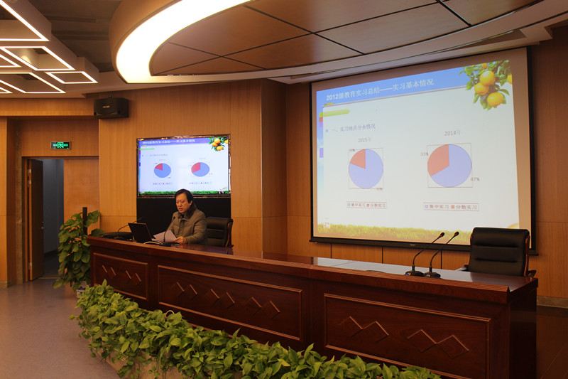 我院2015届教育实习总结大会暨模拟授课比赛于2016年1月8日上午在现代教育技术楼二楼报告厅举办。