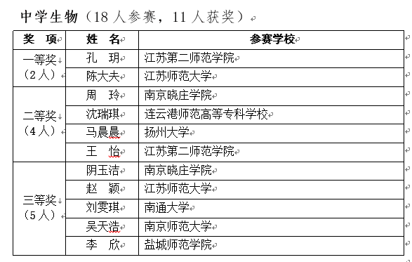 二等奖 蒋敏(化学) 金燕萍(生物科学) 尤文霞(化学) 杨如月(生物科学)