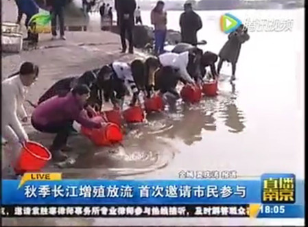 11月29日至12月1日,在南京市农委组织的3次棉花堤渡口长江渔业资源增殖放流活动中,我院共组织了28名大学生志愿者热情参与了该项活动,共放流了“鲢、鳙、青、草”四大家鱼大规格鱼种35万尾。《直播南京》记者现场采访了我院志愿者倪新宇,我院党总支书记陈建琴也一起参加了放流。