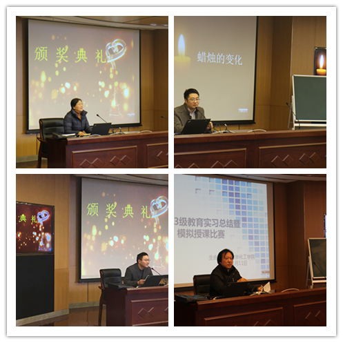 在高学林的主持下,14位同学进行了模拟授课比赛,金浩进行了赛后总结点评。朱学伸宣布比赛结果,他希望同学们牢记从实习中获得的真知,并规划好以后的学习和生活。