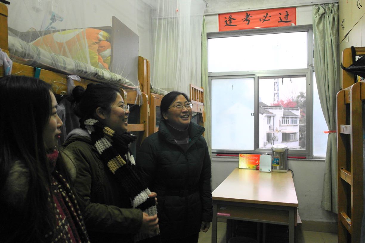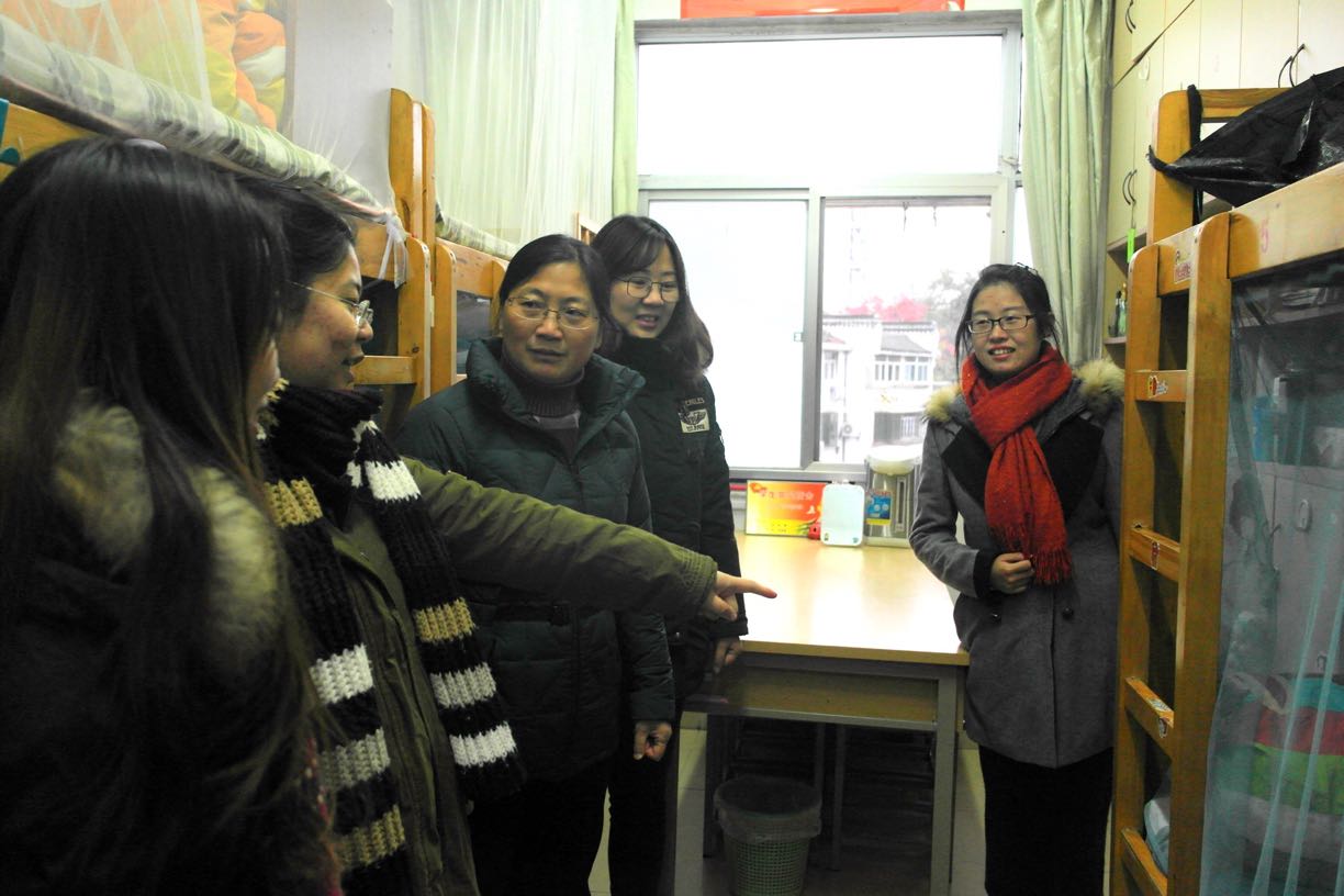 陈书记和老师们依次到各个党员宿舍深入了解学生党员学习和生活的情况并完成党员宿舍挂牌。最先到的是1701宿舍,该宿舍6位成员中有4位党员,陈建琴书记在与她们亲切交谈后与学生党员吴雯婧共同完成党员宿舍挂牌,陈书记强调:学生党员示范寝室的创建,是为了形成以学生党员为中心的辐射源,充分发挥其先锋模范作用,潜移默化,促进其所在寝室成员共同进步,进而以个别示范寝室促进整体提高。接着大家去了1407宿舍,该宿舍里有2016级生物师范班的退伍复学的郑迅同学,她是一名低年级党员,学生党支部书记朱琨老师和她一起完成了该宿舍的挂牌。最后来到的是毕业班学生党员王化健的宿舍,舍友说,通过活动能进一步看清自身与党员的差距,不知不觉中受到影响,向好的方面看齐。在询问同学们最近的考研准备情况以及目前的生活状态后,诸位老师还与同学们合影留念。