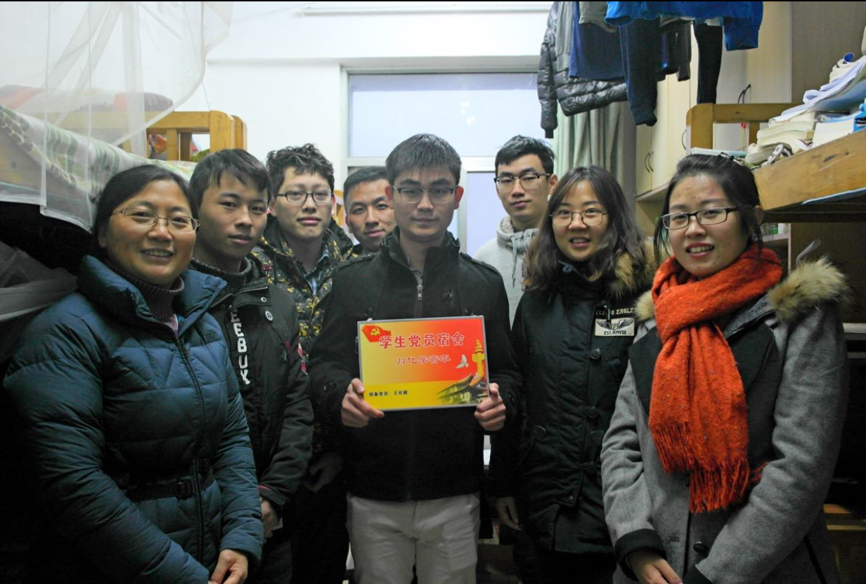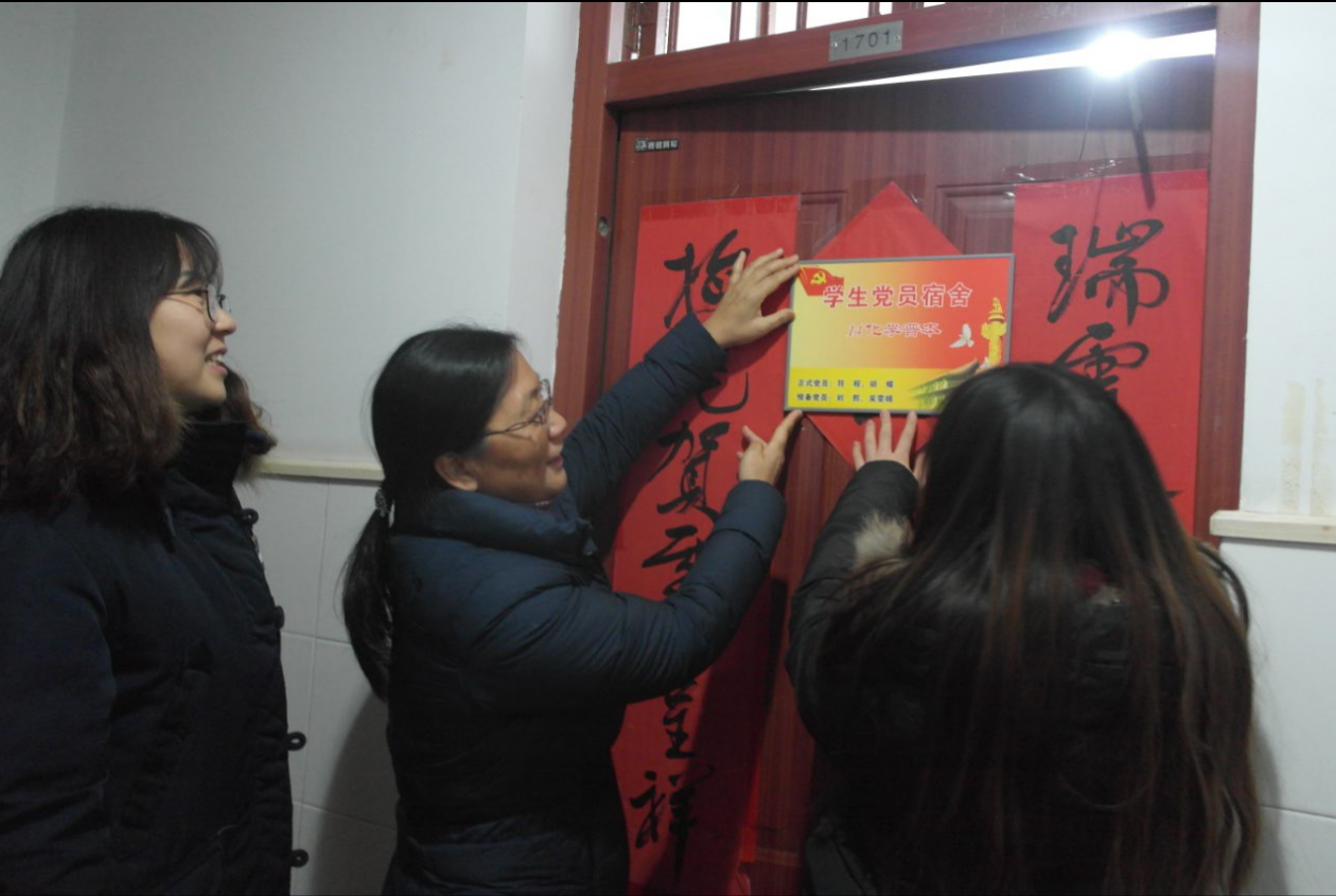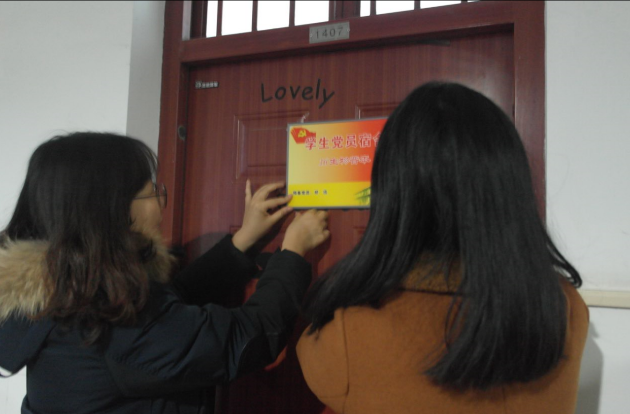 为进一步发挥学生党员在宿舍中的先锋模范作用,以学生党员的自我教育、自我管理和带动全体学生自主管理的热情和潜能,推进校园和谐稳定发展,生化学院开展“学生党员示范寝室”创建活动,2017年12月13日下午,进行了党员学生宿舍挂牌仪式。此次挂牌仪式由我院党总支书记陈建琴、学生党支部书记朱琨、辅导员潘倩和全体学生党员共同参与。