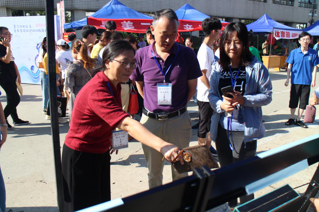此次迎新工作,处处展现生化特色。在体育馆外的签到处,布置有学生制作的昆虫标本和2018届毕业生考研考编高质量就业情况展板,家长们纷纷驻足观看,志愿者同学细心讲解。体育馆内,新同学聆听“我们生活在江苏”——野生动物讲解、动手参加叶拓制作和纸花制作,在卡片上写下寄语。院长蒋功成、总支书记陈建琴、副院长花书贵来到现场指导迎新工作,为家长们解答问题,与新生们互动;进入宿舍区看望新生入宿情况,询问了腿部受伤的轮椅上新同学和回族同学情况,并与他们的家长进行了沟通交谈,对这两位特殊新生今后的学习和生活安排进行了协调。
