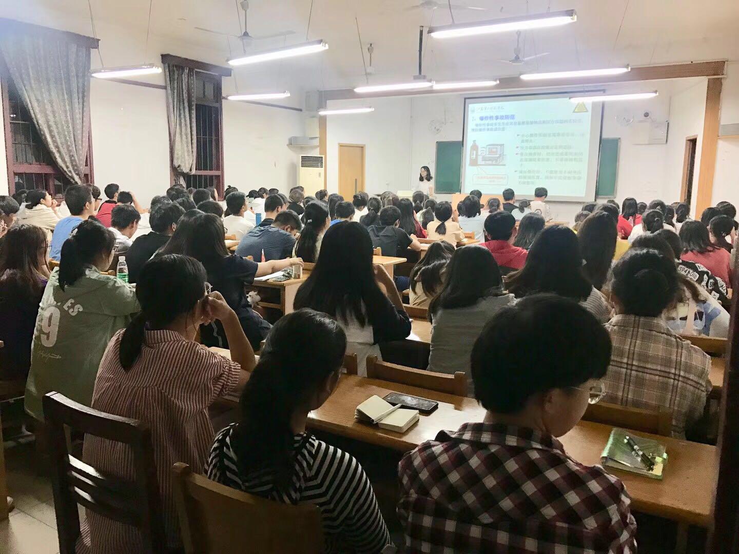 9月28日-9月29日晚,生化学院对全体大一新生进行实验室安全教育的宣讲,严珺和顾小敏担任此次宣讲的主讲老师。