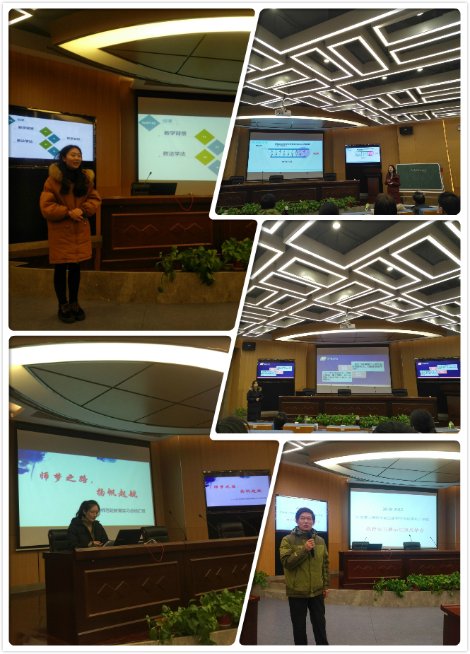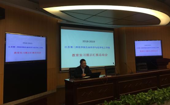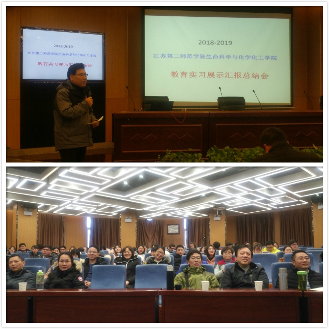 2019年1月10日下午,生化学院举行了2018-2019学年教育实习展示汇报总结会,2015级小学教育(科学)、生物科学(师范)和化学(师范)全体学生参加了此次大会,花书贵副院长,金浩老师,朱善良老师,邹永梅老师,冯燕老师,姜大伟老师,杜攀老师,钱广盛老师,许翠霞老师,王晗老师,陈炼老师出席大会,高学林老师主持了本次总结大会。