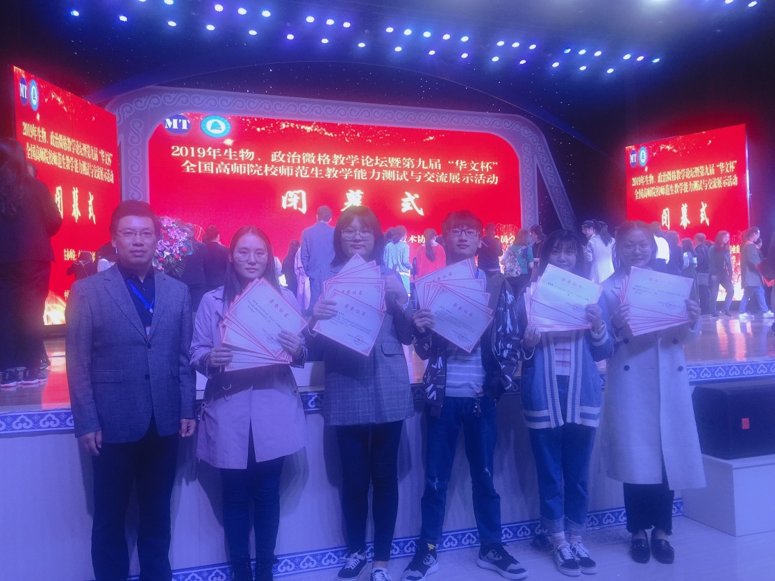 本次比赛选手们在微格教学活动论文评比、教学设计评比、说课、模拟授课、专家提问等方面进行比拼。我们江苏第二师范学院生命科学与化学化工学院在高学林老师的带领下由2016级生物科学(师范)专业崔金霞、朱魏、陶慧慧、郭紫玥、许靖宇五名师范生组成强劲队伍参赛,取得了较往届更为优异的成绩!
