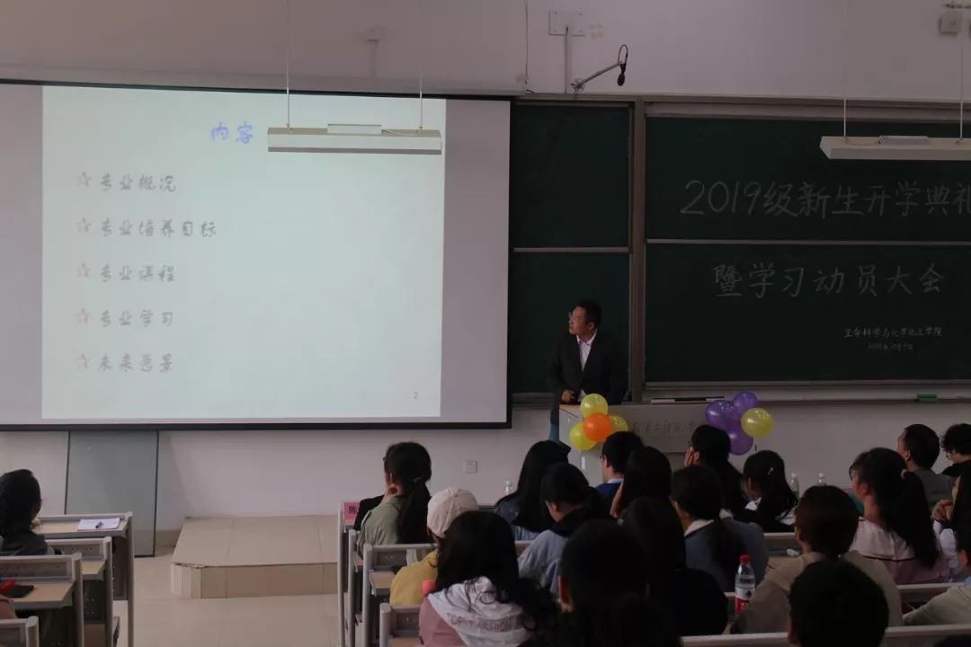 10月9日上午,生命科学与化学化工学院在博2-103教室举行了2019级新生开学典礼暨入学教育系列之学习动员大会。学院院长蒋功成、党总支书记陈建琴、副院长朱学伸、副院长杜攀、年级辅导员、班主任、教师代表、老生代表等参加了会议,大会由陈建琴主持。