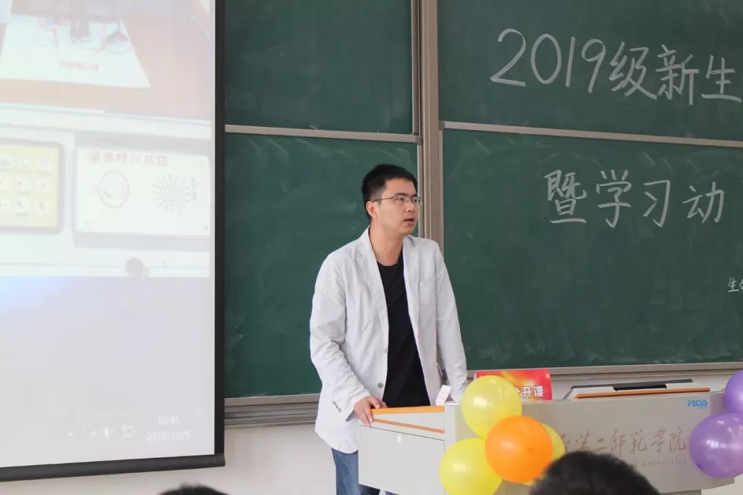 随后我院青年教师钱广盛老师用风趣幽默的语言和通过列举身边的例子告诫大家天赋再好的学生,如果不好好学习,未来也是无用这个道理,让人印象深刻。钱老师还强调了在学习上,思维、想法和兴趣是最为重要,学生必须培养出对学科的兴趣。