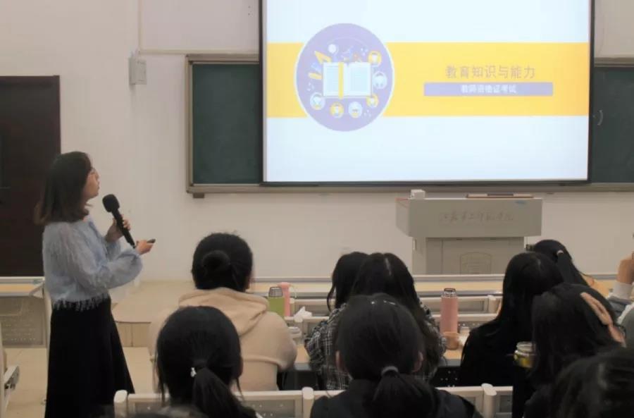 活动开始蒋院长强调了考试重要性并进行了广泛的动员。葛静老师首先从教育知识与能力方面出发,为学生们进行了整体结构的梳理。主要从教育学、心理学、教育教学能力及教育管理的素养四大部分展开。同时分析了高频考点,以讲解知识点和分析真题的方式辅导同学们更好的掌握相关知识。第二场活动中宋学军老师重点强调教育观、学生观和教师观及中小学教师职业道德规范,在各知识点中穿插了适量历年真题的讲解,以便大家更好的理解记忆。顾烨峰老师则对综合素质里的文化常识和作文进行了详细讲解。不仅带同学们回顾了古今历史,中外典型人物及代表作,还提出作文重要的四个关键点,分别是:结构、语言、修辞以及材料的丰富。活动取得了良好效果。