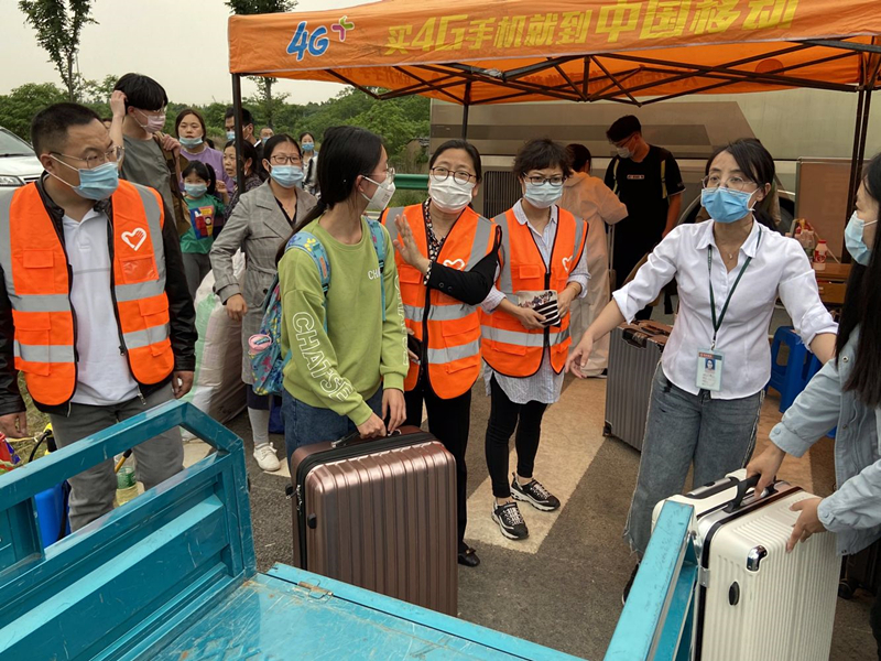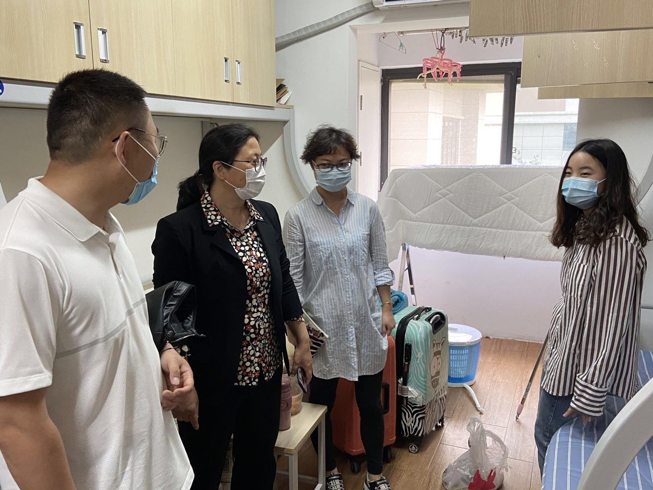 5月13、14日,学院领导班子早早地在校门口迎新返校学生回家。17小教科学普本班(师)吴笑磊同学入校时带了总计十八箱的防疫物资,党总支书记陈建琴、副书记陈燏带领辅导员们到西门处帮忙搬运,并亲自送至宿舍,迎接工作让家长感到温暖放心。同时,副院长朱学伸、杜攀也深入学生宿舍,深入了解学生返校后的实际状况,与学生面对面,了解学生对学校宿舍疫情防控工作的一些具体建议和意见,让同学们感受到阵阵暖意,他们专程来到我院湖北籍学生19科学教育班夏梦彬同学的宿舍,详细询问该生身体状况、家庭成员身体状况、家庭经济状况是否受影响等。