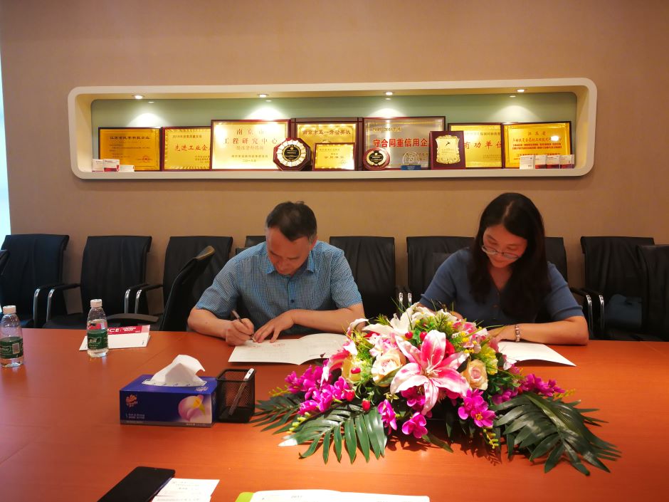 蒋功成代表学院与南京恒生制药有限公司签署合作协议,并进行大学生实践基地、大学生实习就业基地授牌。
