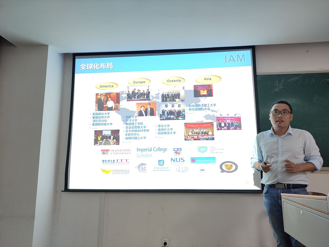 IAM副教授伊昌博士介绍了该研究院的发展历程、研究方向、科研实力、英才梯队、全球拓展、平台建设以及人才培养方面的内容。他向大家介绍了团队领军人物——黄维院士及IAM其他教授、导师的科研成就以及所负责的主要项目类别,同时以其高水平论文的数目、ESI影响力、代表性成果等向大家展示了南京工业大学先进材料研究院的雄厚科研实力。