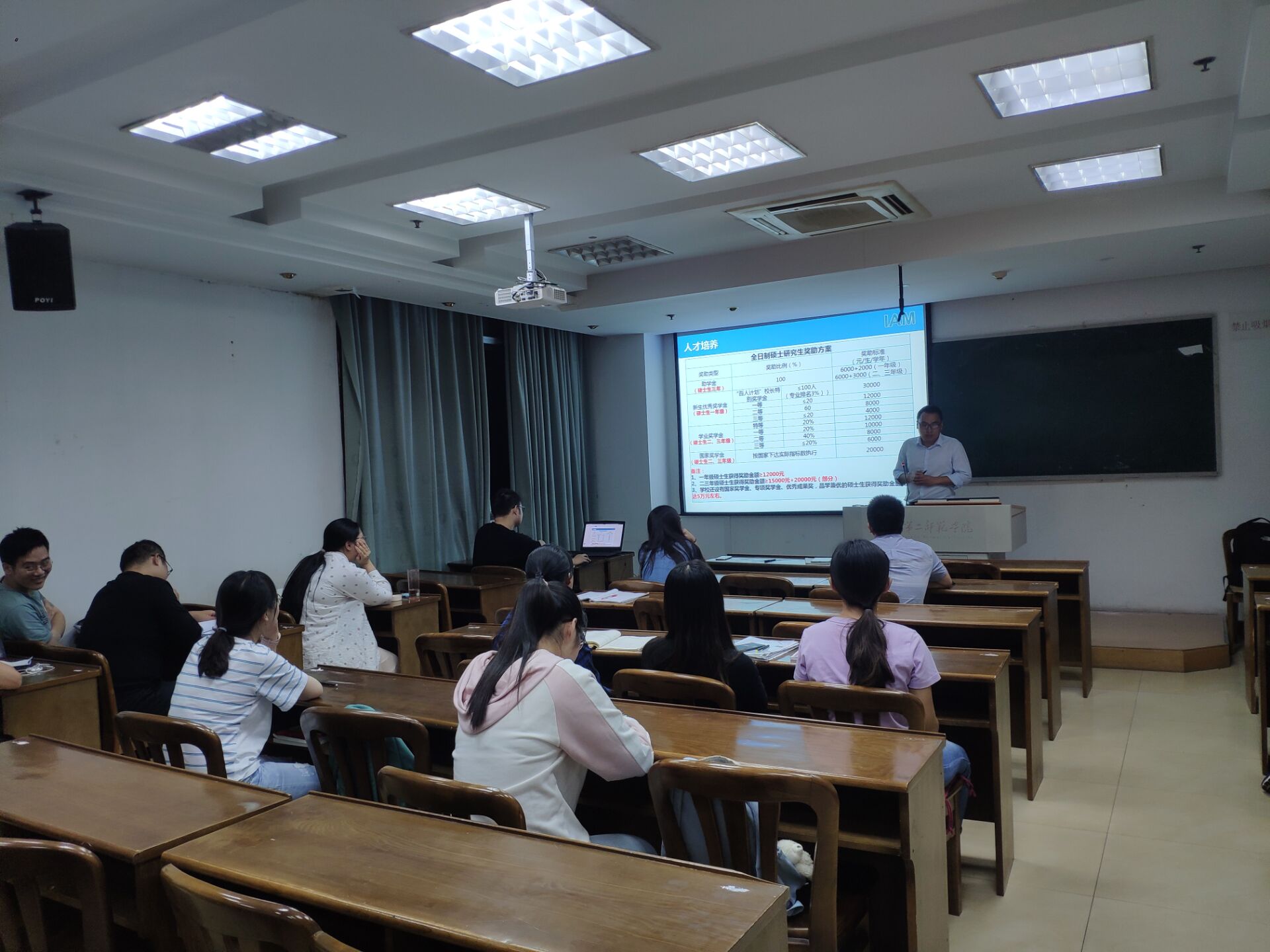 随后,招生院办的杨丽娟老师给大家介绍了IAM的招生、报考信息等,详细介绍了硕士研究生的奖助学金、福利待遇等情况,让大家更全面地了解了IAM。