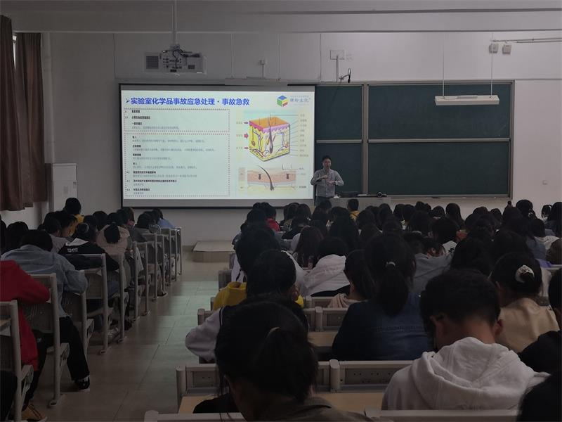 杜院长向2020级新生强调了本次培训的重要性,要求他们牢固树立安全意识,认真学习安全知识,为实验环节的学习做好思想和理论准备。屈老师向同学们解析了实验室各种可能出现的突发事件,并普及了实验室安全事故防范措施及应对措施,为同学们今后的实验室规范操作打下坚实基础。随后屈老师就实验室安全操作相关问题以及近几年高校实验室安全事故等方面做了详细讲解并与在场新生进行了互动。讲座在同学们的掌声中圆满结束。