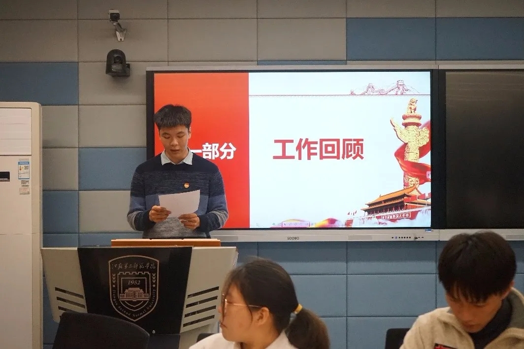 沈书怀同志代表江苏第二师范学院生命科学与化学化工学院委员会做筹备工作汇报,希望各位代表与全体工作人员齐心协力、团结一致,做好大会期间的相关工作。