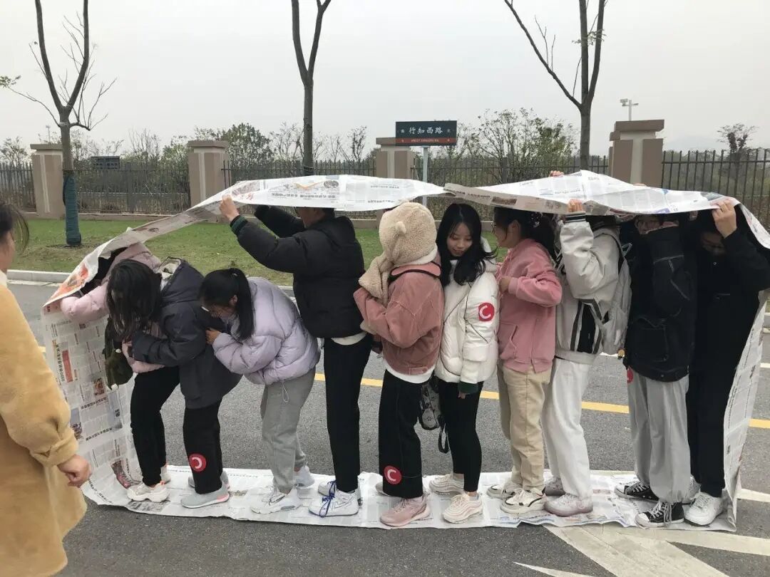 工作人员根据各小组在首个环节时的游戏排名,分发了不同的游戏线索和锦囊,并分配了不同的路线。为更好地锻炼小组成员间的团结协作能力,在每条路线上都精心准备和安排了各种游戏关卡。每个小组根据提示的线索,在动脑思考的同时仔细找寻,最终顺利通关并到达最终地点——操场。