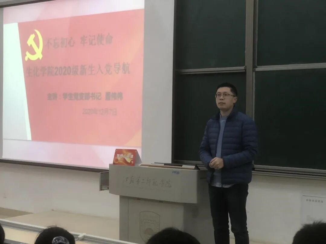 为推进2020级新生充分了解认识中国共产党,同时熟悉掌握党员的要求,董伟伟老师从大学生申请入党的正确动机、正确理想信念及发展党员的具体条件和流程三个方面做了介绍及详细阐述。最后就新生入学以来,学习与生活方面表现出的一些问题,提出了明确的建议与要求,表达了对生化学院2020级新生的殷切期望。