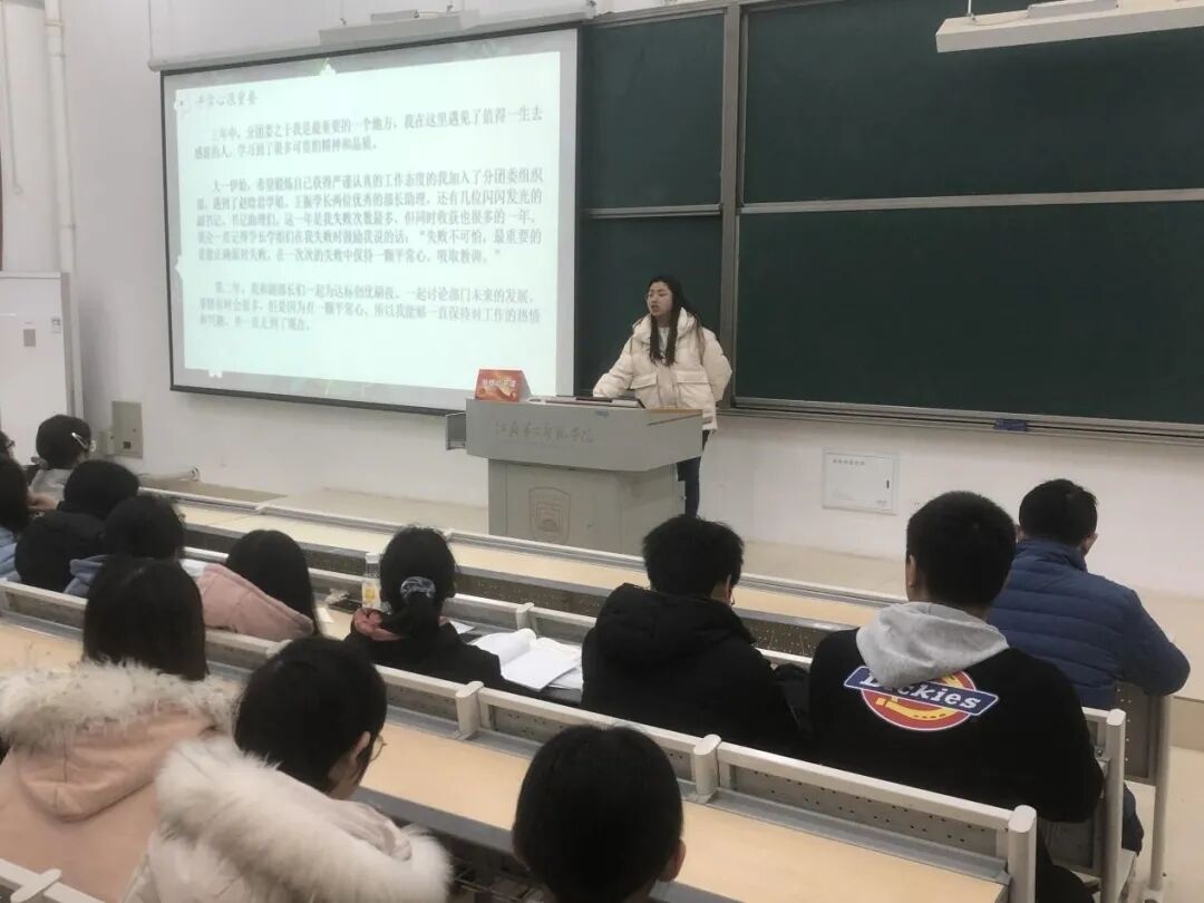 大会中期,生化院分团委学生书记,学生党支部预备党员桂昕怡以“登攀不止,敢为人先”为题,结合自身担任班长与学生干部的经历,向在座新生传达了大学不仅要学好专业知识,主动为班级、学院服务,也要积极参加第二课堂的实践活动。在不断的实践中,归纳自身的问题与优势,不断扩大自身优势。在磨炼中正确面对失败,保持谦虚的心态,多学习别人的优点,成为一个人品过硬、实力够强、勇于担当的新时代先锋青年。