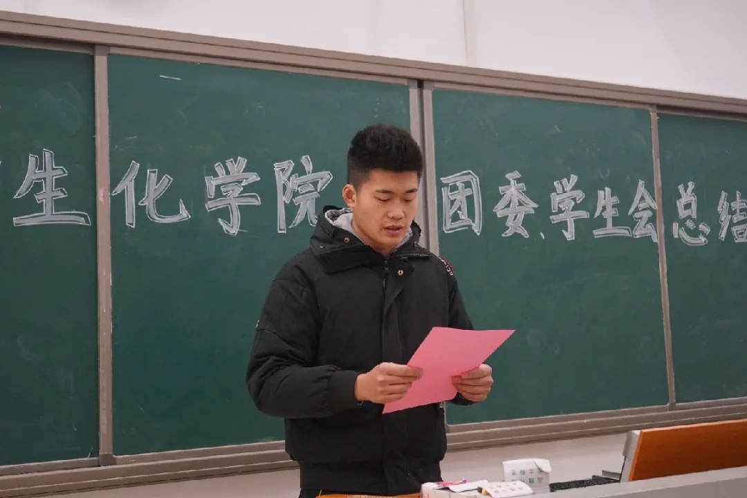 至此,生化院学生会与分团委所有部门的工作总结汇报完毕。学生会主席沈书怀对学生会主席团助理的成功竞选表示祝贺,并对在场与会人员予以真挚祝福:希望全体成员能够在新的一年里勇攀高峰,向更广阔的大海扬帆远航。