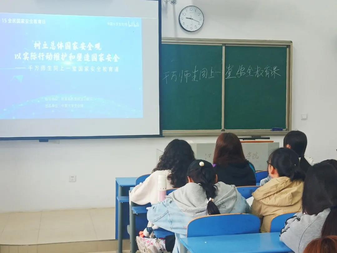 4月14日傍晚,我院各班学生代表齐聚博2-418,积极参与了此次以“千万师生同上一堂国家安全教育课”为主题的公开课。课堂内容主要以录播的形式向同学们呈现,旨在使学生对安全教育有更为深入的认识和理解,从而增强学生的国家安全意识,鼓励学子树立正确国家安全观。