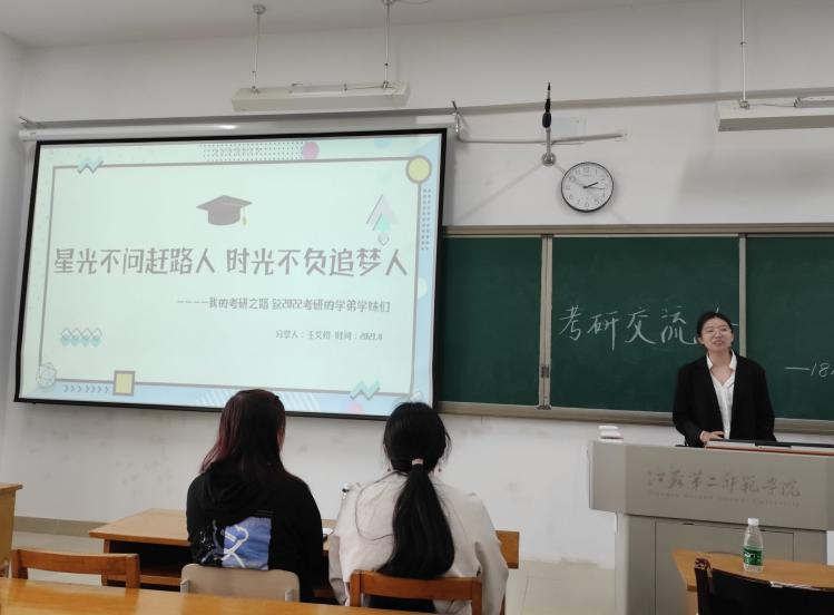 第二位分享经验的是王艾如学姐,她已经被南京工业大学先进材料研究院录取。她用诙谐的语言告诉同学们:大家要清晰地评价自己,考研最忌讳好高骛远,清楚自己想要什么,也要给自己一个坚持下去的理由。王艾如学姐特别讲解了如何择校,同时也分享了很多复习的经验以及联系导师的方法,她强调在复习过程中要注重效率,珍惜考研前期的时间。大家在幽默风趣的氛围中,汲取了很多考研经验,相信同学们听了学姐的分享,将来一定会少走弯路。