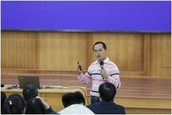 活动第二环节由吴久宏老师作题为《追寻情理交融的生物学课堂》的专题讲座。吴老师将自己从毕业后由青涩的年青教师到市级学科带头人的成长经历和教学体悟,浓缩为这个讲座,毫无保留地传授给母校的学弟学妹。讲座中,吴老师结合大量的教学案例和论文素材,将情理交融的课堂特征生动、通俗又不失专业的进行了详细介绍。“情,让课堂充满‘人间烟火’;理,让学生更加理性地应对现在与将来”这两句话深深的烙在现场每一个人的心中。名师的成长过程本身就是一个对梦想无条件热爱和不懈追求的过程,吴老师的讲座带给这些大学生的不是对鲜花和掌声的向往,而是对教育的热爱和追求!
