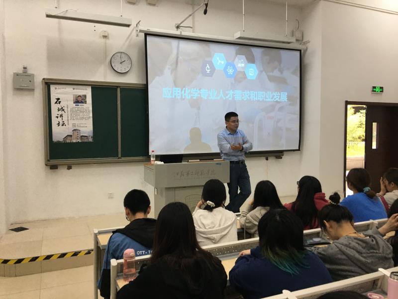 5月26日下午,江苏中谱检测有限公司创始人、蜂产品国际标准中国专家组成员、南京德瑞源医药科技有限公司总经理徐锦忠博士受邀来院为应用化学专业的同学们作了题为《应用化学专业人才需求和职业展望》的讲座。应用化学专业2018~2020级全体同学以及2017级部分同学聆听了讲座。本次讲座由应用化学教研室主任姜大炜老师主持。