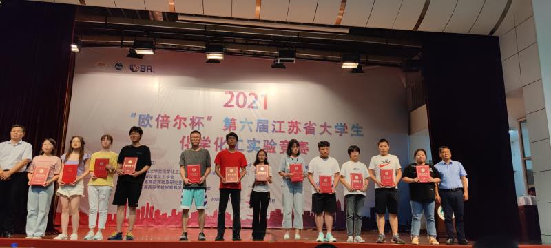 2021年7月17-19日,由江苏省教育厅主办,江南大学承办,江苏省高校实验室研究会、江苏省高等学校化学化工实验教学示范中心联席会和江苏省化学化工学会、北京欧倍尔软件技术开发有限公司共同协办的“欧倍尔”第六届江苏省大学生化学化工实验竞赛在江南大学举行,来自南京大学、东南大学等高校在内的全省41个高校、69个代表队(化学组41支代表队、化工组28支代表队)共计207名优秀大学生参加笔试和实验操作比赛。在生化学院杜攀副院长、两位老师杨慧、张雅洁的带领下,2018级应用化学专业张巧娜和李其相、化学(师范)专业薛子薇三位同学作为参赛选手参加了本次化学组竞赛。