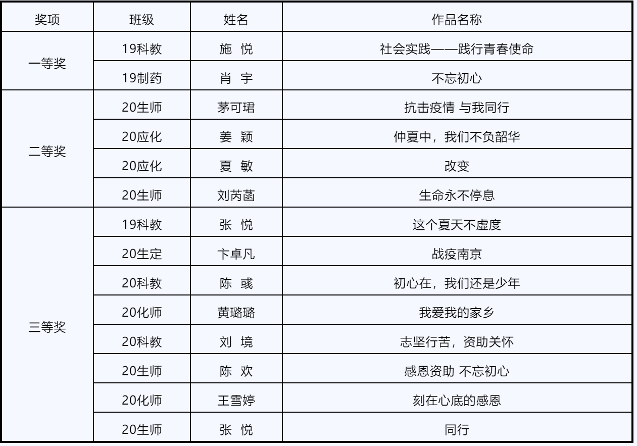 最后,恭喜以上获奖同学,“苏乡永助”资助育人之“咏初心,忆资助”短视频活动圆满结束!