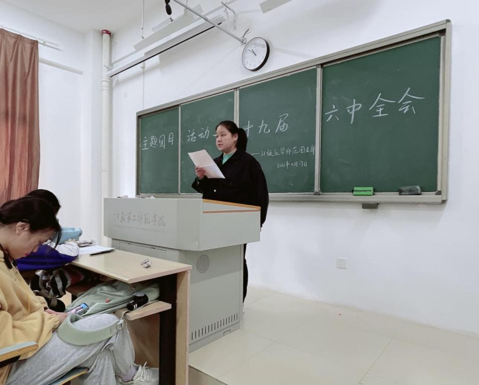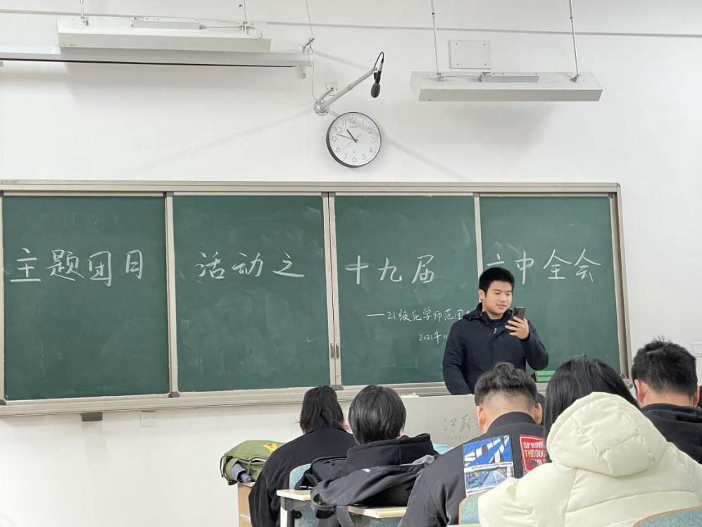 党的十九届六中全会于2021年11月8日至11月11日在北京顺利召开,为了让同学们深入学习党的十九届六中全会精神,感悟在百年之旅中党的奋斗精神和奉献精神,21化学师范团支部于2021年11月17日召开主题团课。以下是五位同学对于党的十九届六中全会学习后的感悟分享。