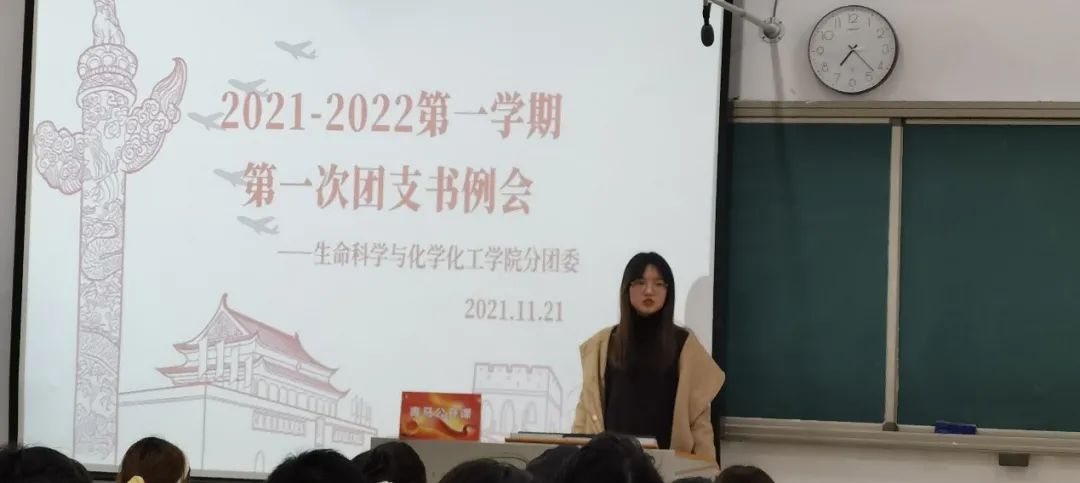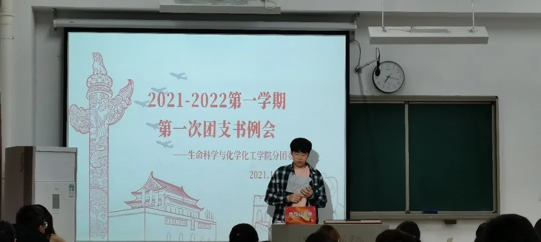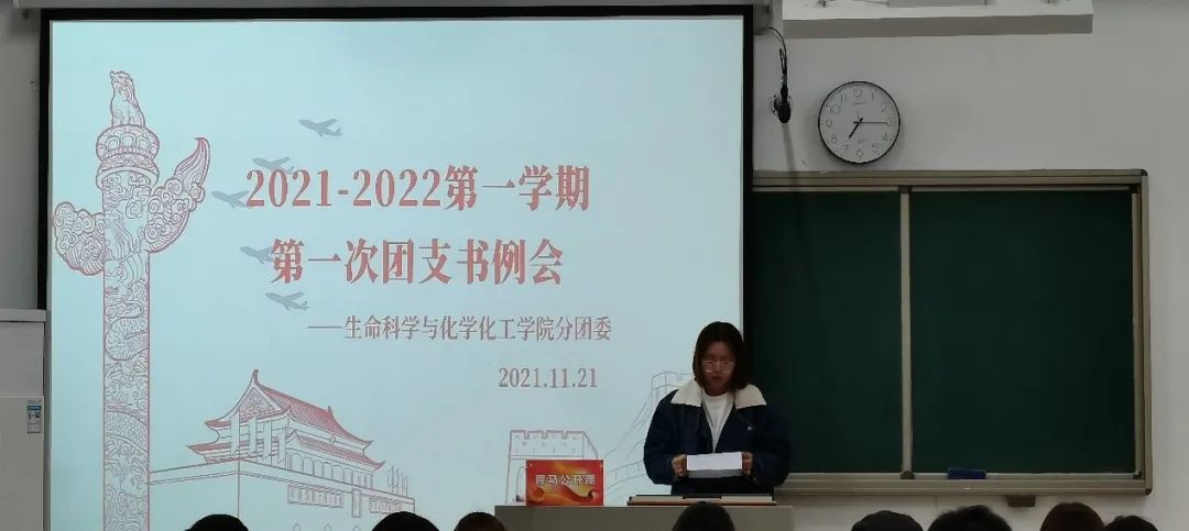 生命科学与化学化工学院2021 - 2022学年第一学期第一次团支书工作例会于2021年11月21日在B1-201召开。本次会议参会人员为分团委全体成员及19、20、21级各班团支书,会议内容包括部门工作对接、问题讲解、书记寄语三个部分。