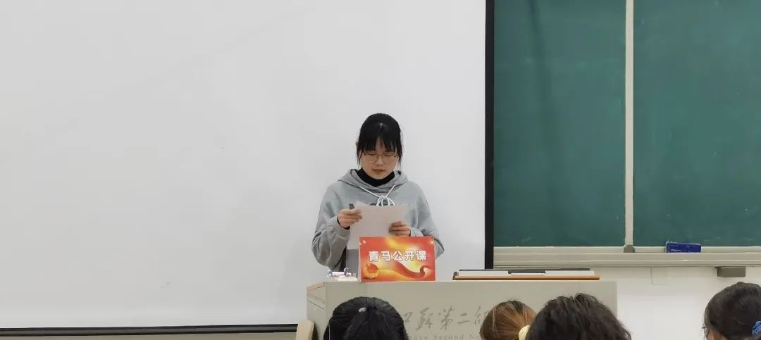 接下来由分团委宣传部的王美萱对主题团课活动的开展以及注意事项的讲解。她分别对交稿时间、稿件字数、参与成员、团课活动照片要求以及主题团课开展顺序进行了详细解说,对团支书后期稿件内容的处理进行了培训。