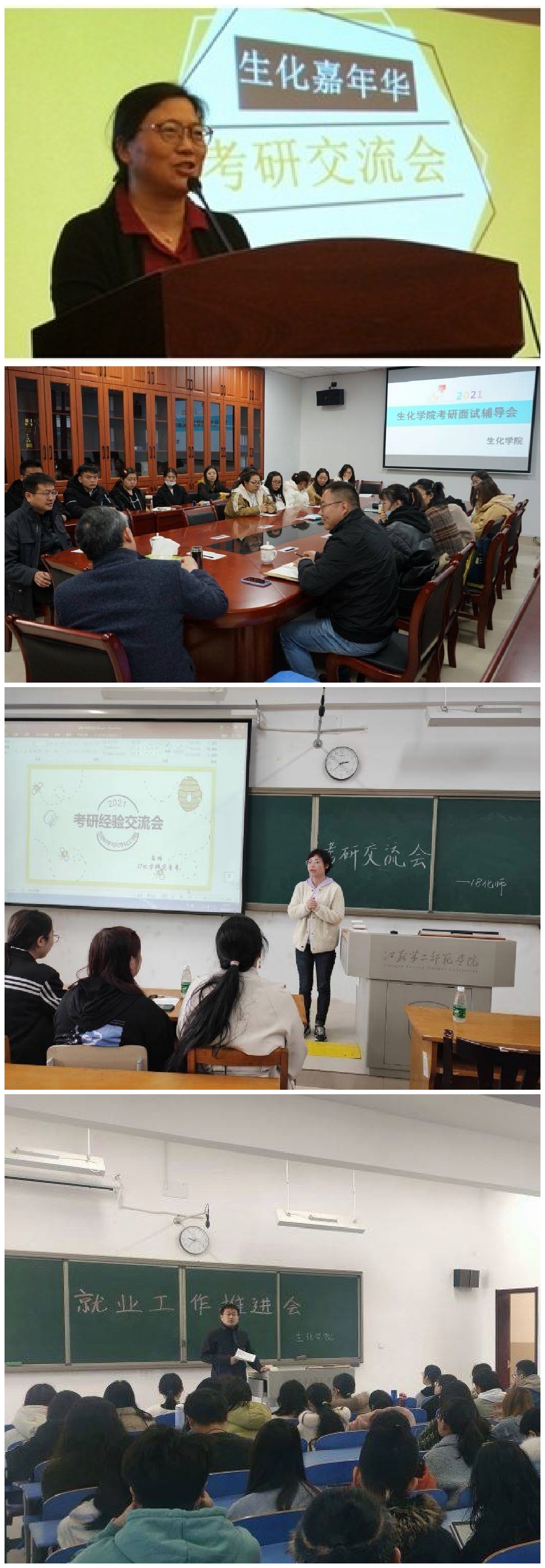 生化学院党政历来将考研工作作为提升人才培养质量的重要环节,提升教学质量,加强班风、学风建设,鼓励学生继续深造攻读研究生。每年自新生入学后,通过开展专业导航、学生考研动员大会、学生考研经验交流会、校外专家讲座、开设2间考研专用自习室等形式和方法充分调动学生考研热情,坚定专业理想。