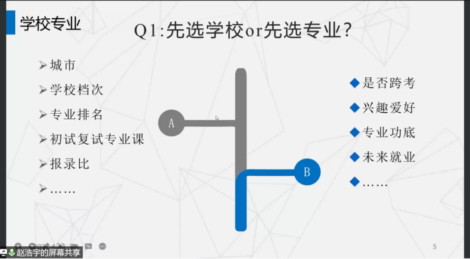 其他学长学姐根据各自的考研情况,分别从择校、备考时间规划、各科学习方法及时间规划、面试注意事项和考研调剂情况给大家分享了一些干货,并对学弟学妹们提出来的考研问题进行了解答。
