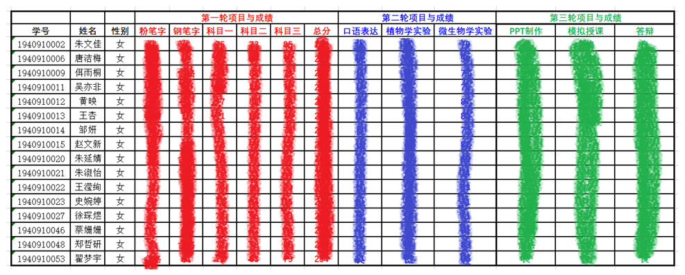 第一轮比赛:全员参加,主要以国家教师资格考试现有最好成绩和粉笔字、钢笔字专项作业开展线上评选;前50%进入第二轮比赛。