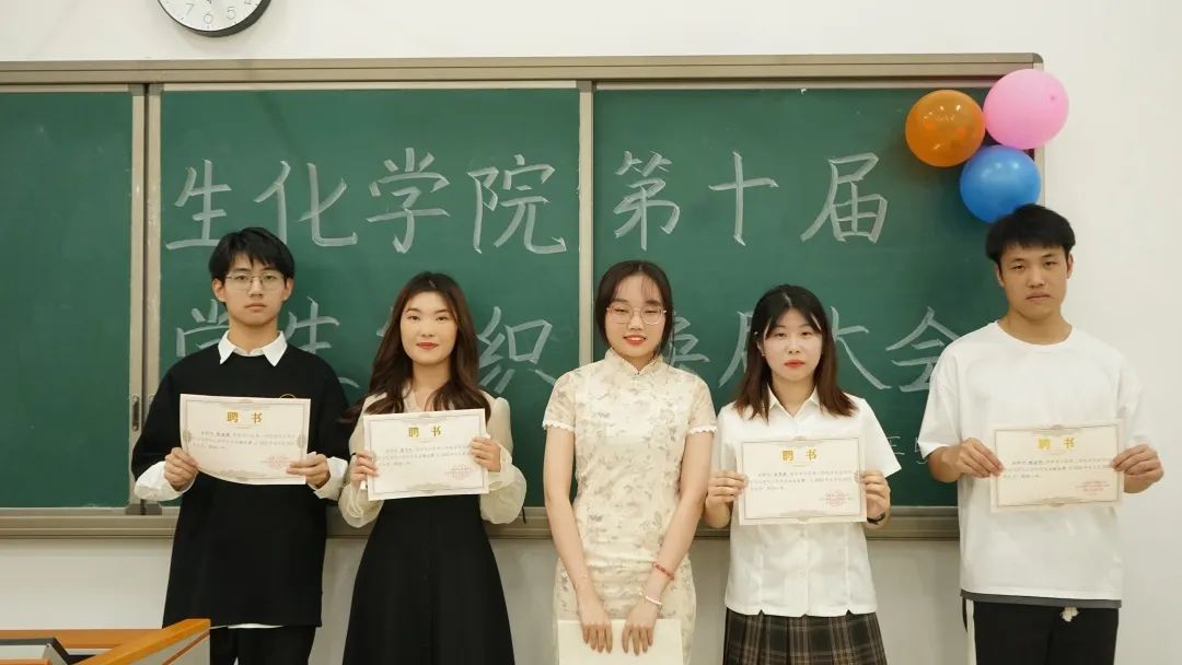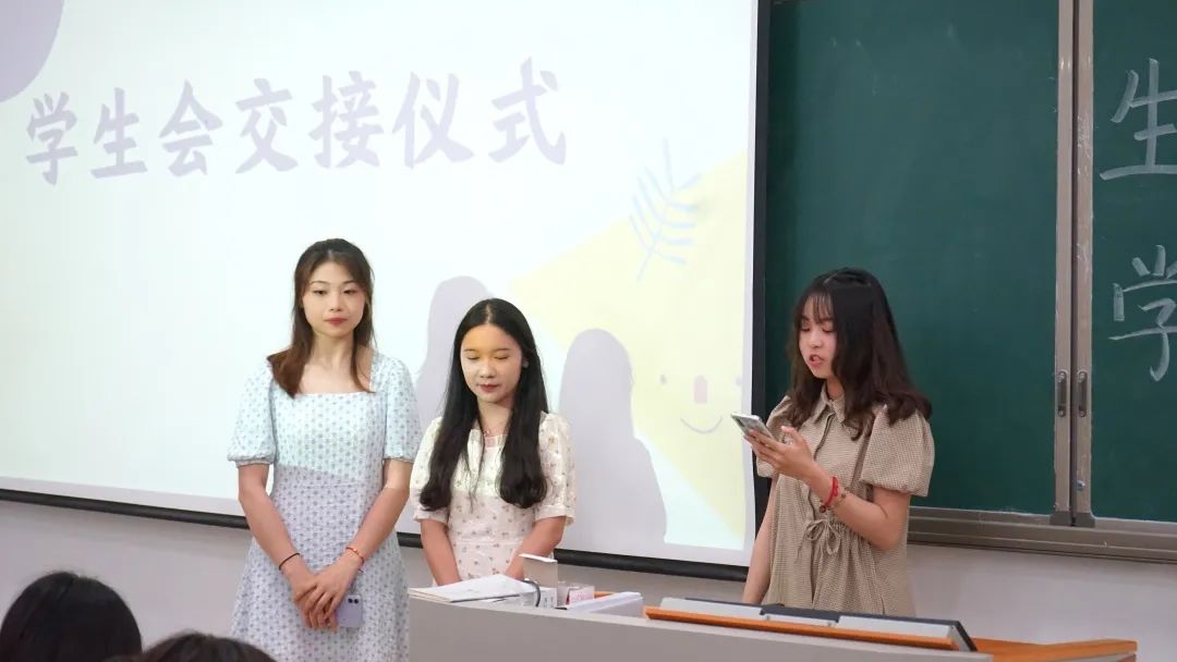 首先,由第九届学生会主席谢雨欣公布第十届学生组织、学生社团主要学生干部名单,并与上届学生干部代表为当选同学颁发聘书并合照留念。