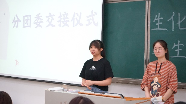 在轻松有趣的暖场小游戏过后,换届仪式正式开始。新任的学生干部们为自己的前辈送上了最真挚的祝福。分团委、学生会、江豚保护协会和“自然而然”生态与环境保护协会的前辈们依次上台,传递信物,讲述内心的激动与不舍,倾诉对学生组织的热爱,表达对后辈的祝福与期望。交接仪式过程中,有人微笑洒脱,有人饱含深情,有人热泪盈眶,一幕幕都深深刻印在每个人的脑海中。