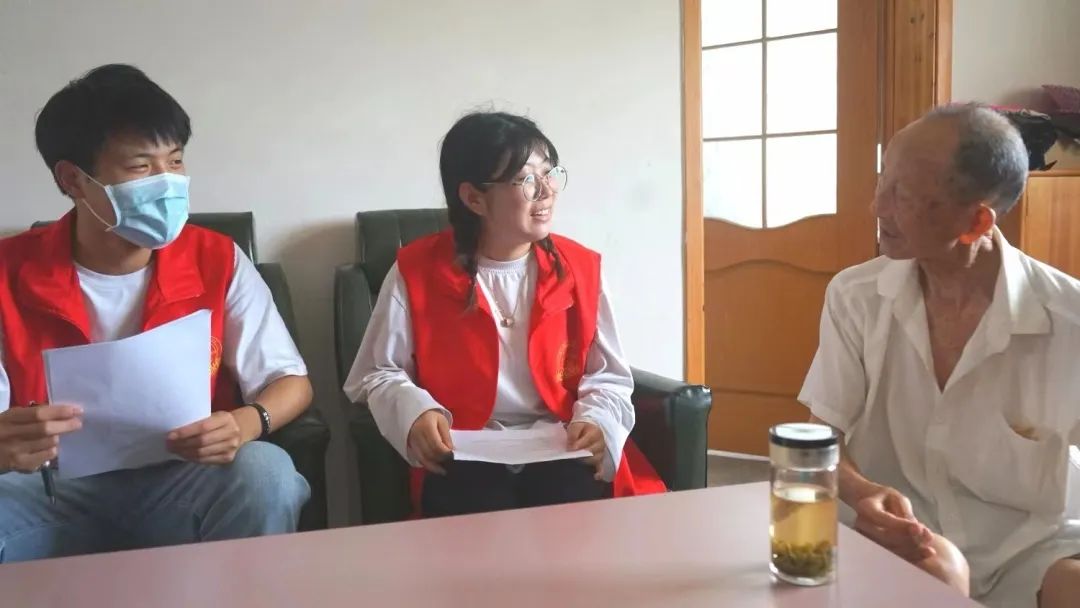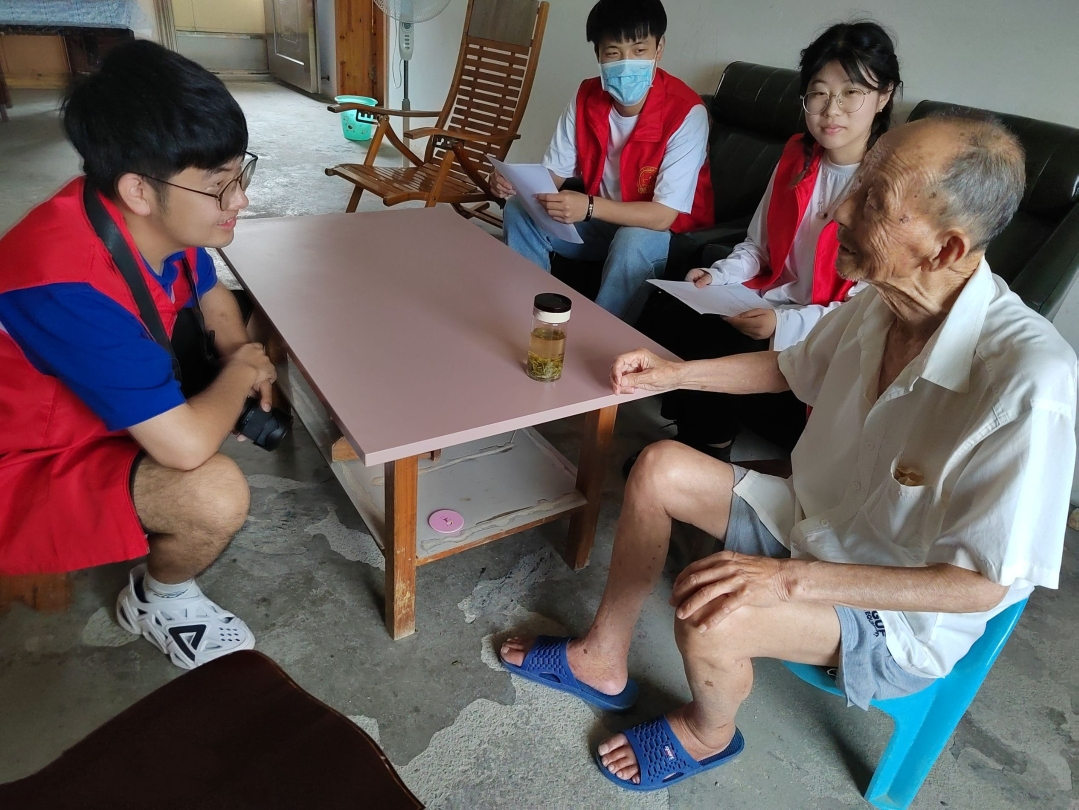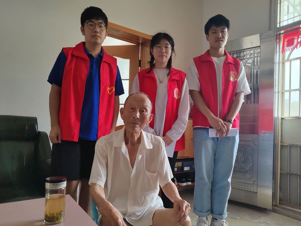 在开展党史爱国教育课的同时,实践团其他成员走访慰问了当地社区的老党员傅叙福,傅叙福爷爷于1928年出生,见证了中国翻天覆地的变化,一步步兴旺发达,繁荣昌盛,他于1955年8月1日正式加入中国共产党,从此成为党和祖国在群众中一枚闪闪发光的螺丝钉。通过此次采访,实践团成员了解了老党员的入党初心与故事,深刻感受到党的先进性,收获了老党员对青年学子的殷切祝福。