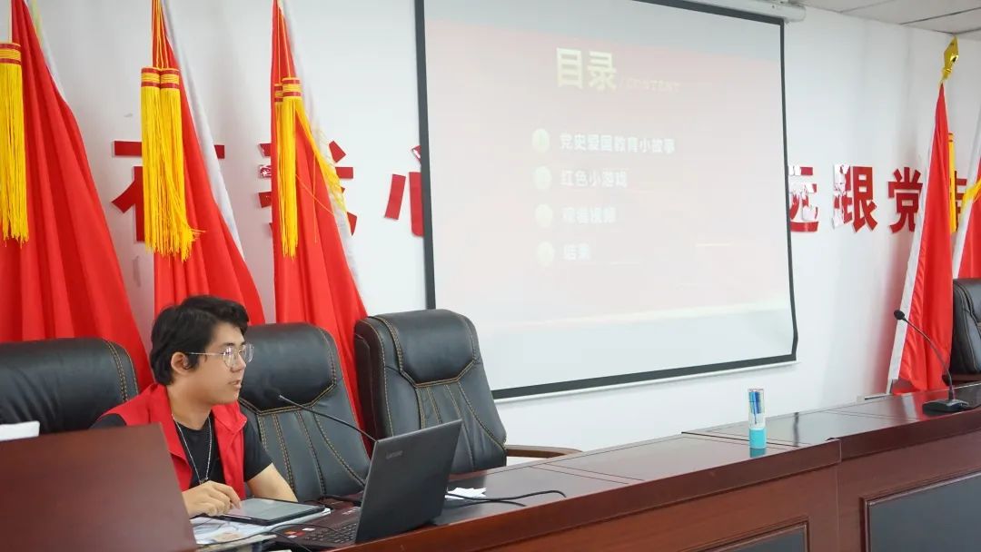 6月28日,实践团联合蟹塘社区开展实践活动。团队成员范晟为当地小朋友们上了一堂印象深刻的党史爱国教育课。课程开始,范晟同学以天安门为线索讲述了中国共产党历史上的几件大事,之后通过“党史知识击鼓传花”、“党史传声筒”等有趣小游戏,帮助小朋友们更快地掌握党史相关知识。最后播放爱国影片《闪闪的红星》,100分钟的观影时间里,小朋友们了解到少年英雄潘冬子的故事,深受感动和教育。