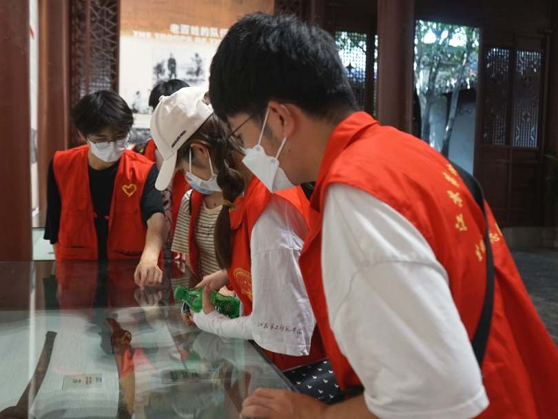 6月26日,实践团前往高淳革命老区新四军旧址开展实践。团队成员陈逸潇担任讲解员,为实践团详细介绍了高淳革命老区新四军旧址以及陈毅将军的英雄事迹。1938年5月中旬,新四军一支队在司令员陈毅率领下,抵达高淳,将司令部设在吴氏祠堂内。陈毅在高淳期间,积极开展党的统一战线工作,号召军民各界共同抗日。6月7日,陈毅告别高淳民众,率部继续东进,在高淳期间曾写下了《东征初抵高淳》的壮丽诗篇。
