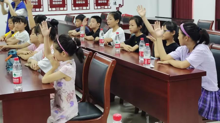 随后,实践团成员和小朋友们一一自我介绍,进行初步了解。初次见面,小朋友们脸上还略有一丝腼腆,小声又雀跃地说着“老师好”,眼神中充满光芒与希望。自我介绍后,小朋友们自豪地说起自己的暑期计划,更有几位积极的小朋友当场演唱歌曲、朗诵诗文,周围的孩子们为他们鼓掌,现场气氛热烈。接着,团队成员陈逸潇向小朋友们介绍了本次社会实践的课程安排,同时强调了课堂纪律,孩子们认真端坐听讲,对课程的开展充满了期待。